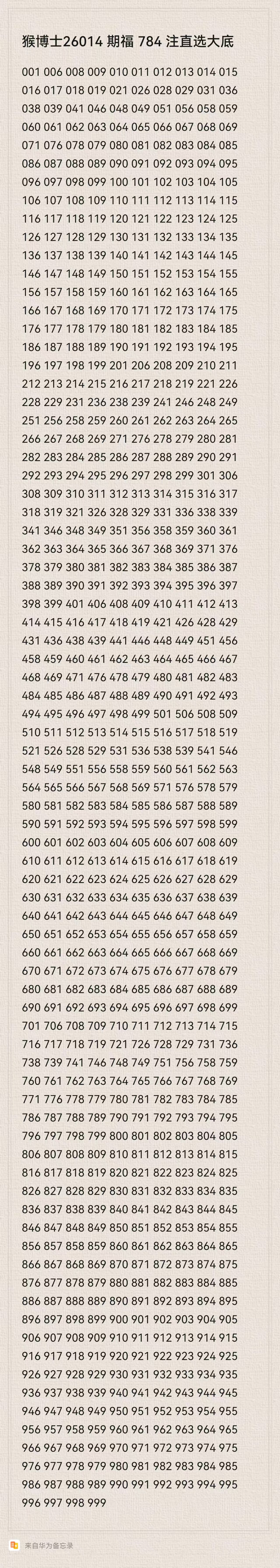 猴博士26014期排列三164注组选大底:(可以当母底用,然后进行缩水)