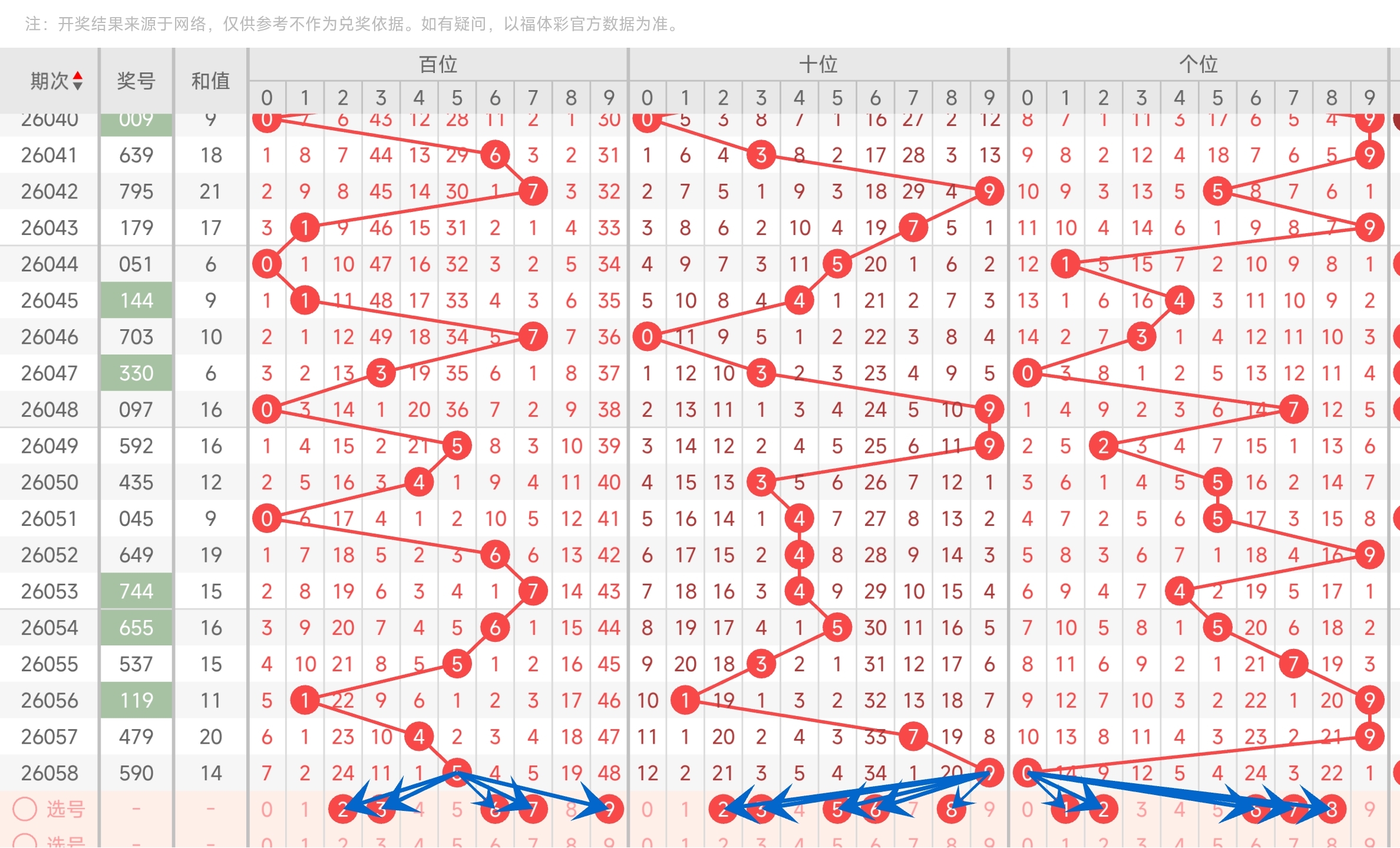 上期和值为14,往前一期和值为20,趋势往左移动,偏移量为6。通过走势图分析,14和值是近30期内开出中间的和值,下降空间和上升空间差不多,但本期比较看好和值变大。因此推测本期趋势是往右的,和值会变大,小概率往左,和值变小。