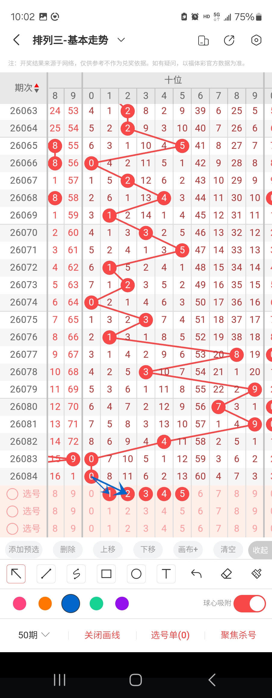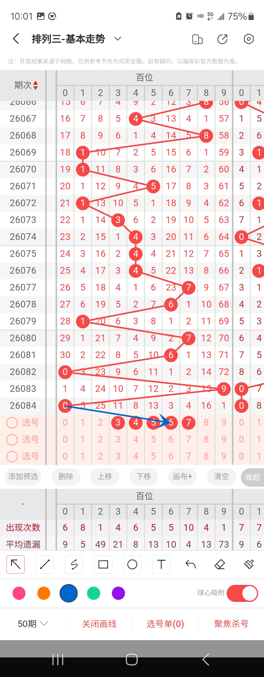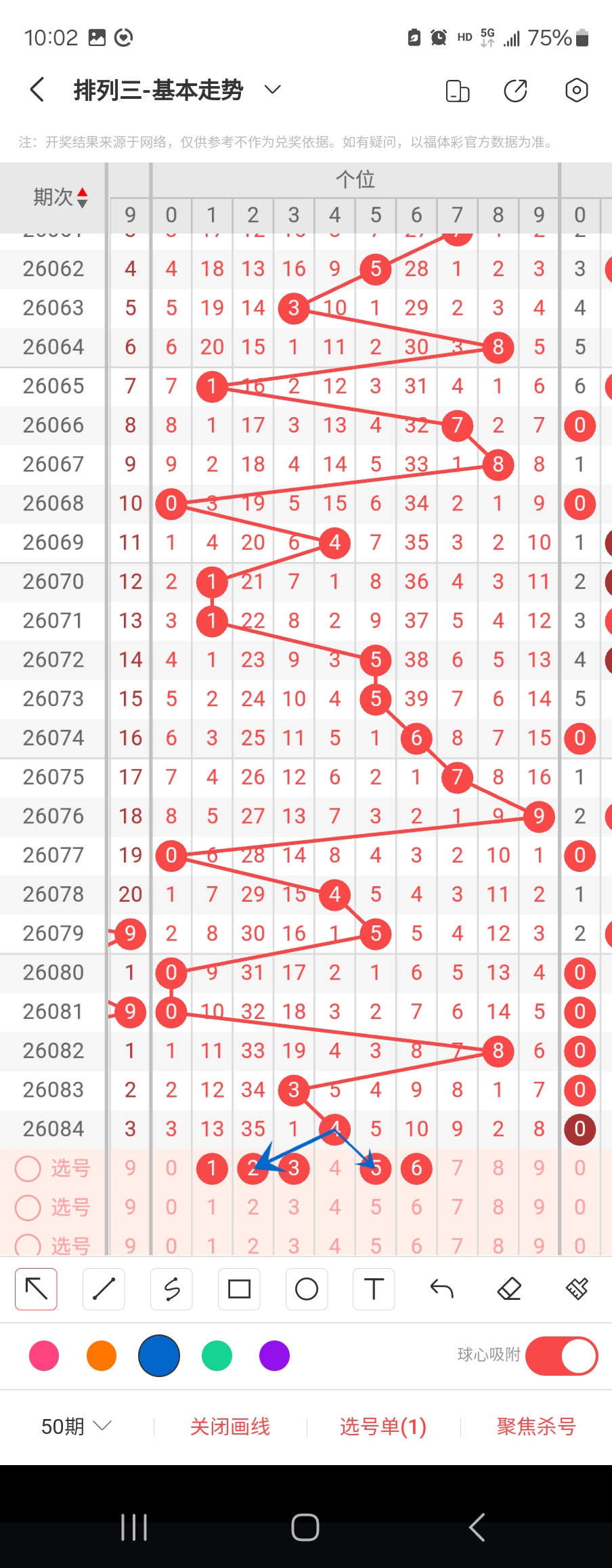 个位走势标注如下图;