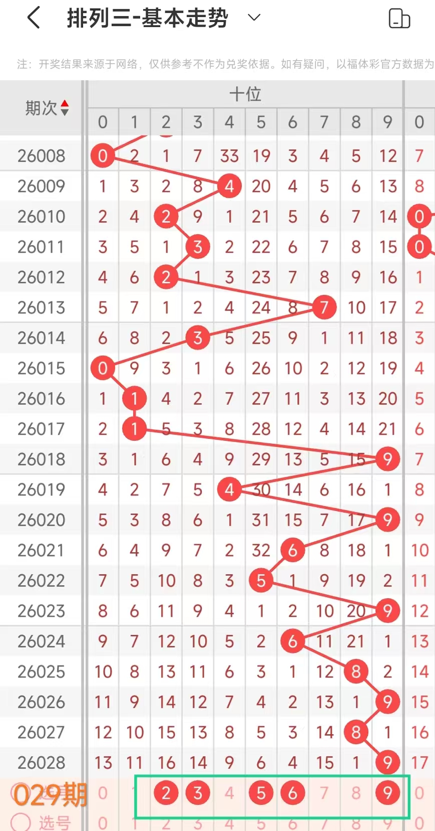 近10期开奖遗漏值分别为  1 15 32 2 2 21 2  1 1,奇偶属性分别为:奇奇偶偶偶奇偶奇奇,奇后可能出偶,而偶数遗漏值的有23569,本期不妨考虑一下。