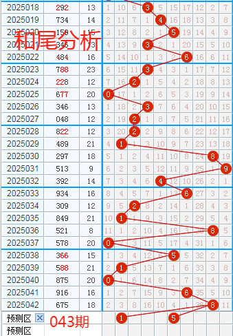 上期跨度为2,近5期跨度开出情况:第25038期开出3,属于奇数,0路号码,木属性;第25039期开出3,属于奇数,0路号码,木属性;第25040期开出3,属于奇数,0路号码;第25041期开出8,属于偶数,2路号码;第25042期开出2,属于偶数,2路号码;