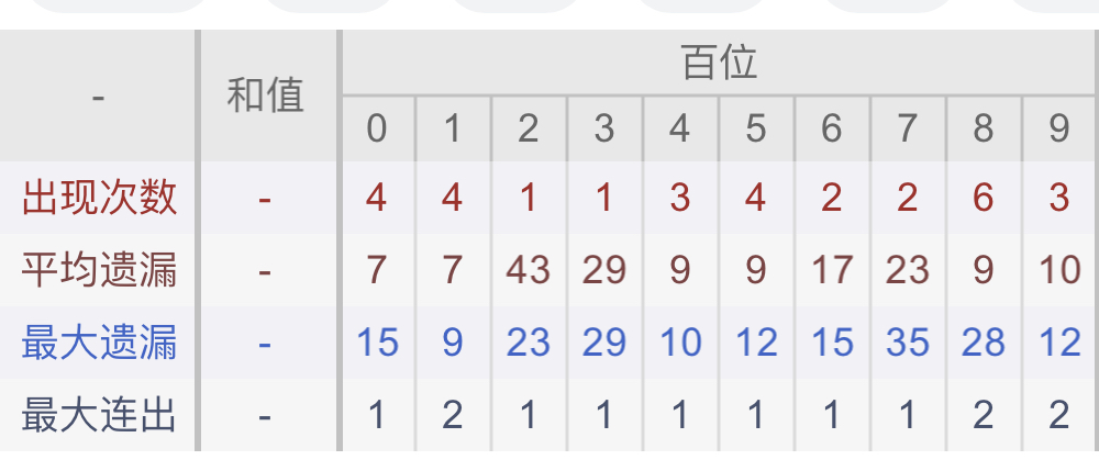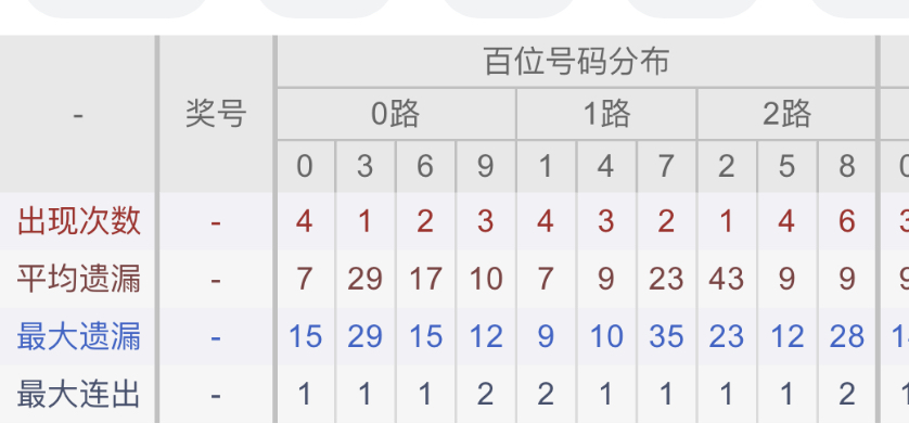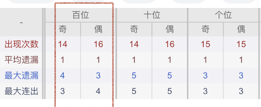 从近30期数据我们可以看出百位1是热码,这个冷热码数据我们结合之后的分析再利用它