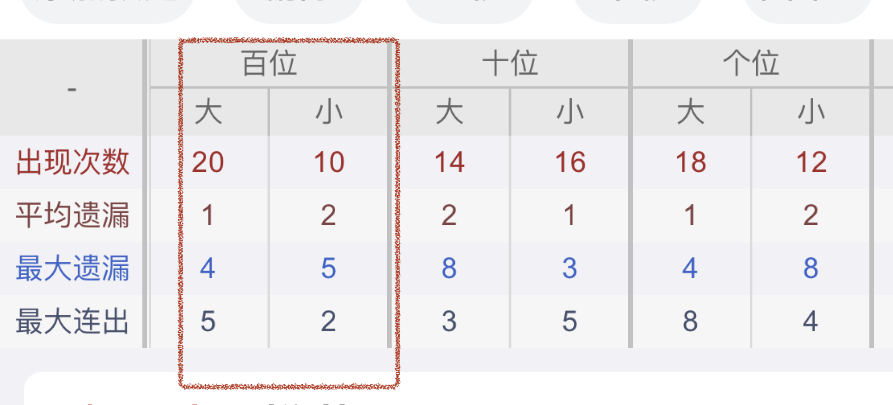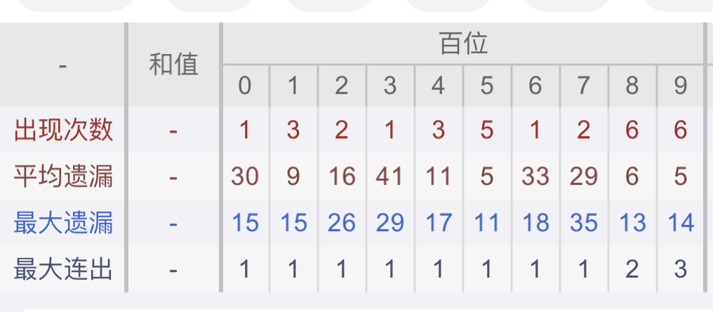 从近30期数据我们可以看出百位1是热码,这个冷热码数据我们结合之后的分析再利用它