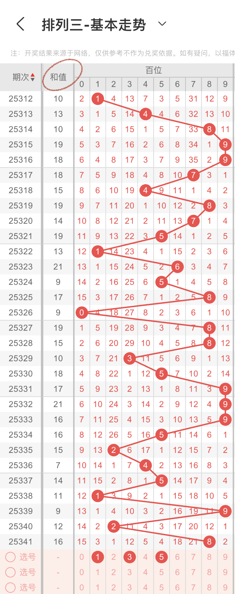 结合上面的大小、奇偶以及012路比,我们可以得到的数据分别是第一组01234,第二组13579,第三组0369,我们重点选择3组数据中重复的,那百位我们选择3,防2路的5,1路的1,综上所述百位选135