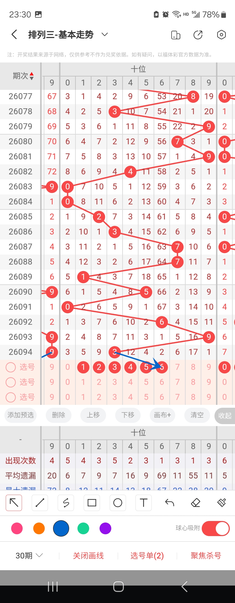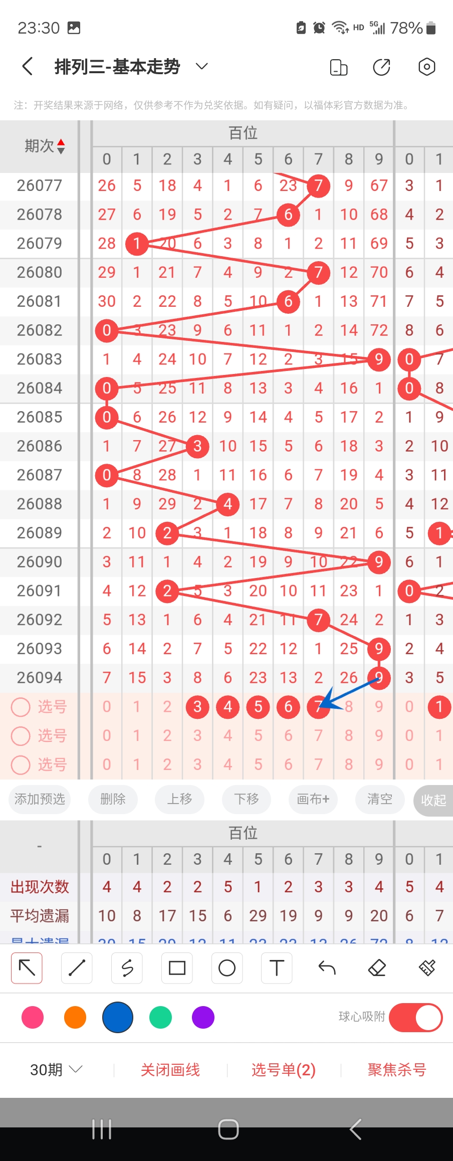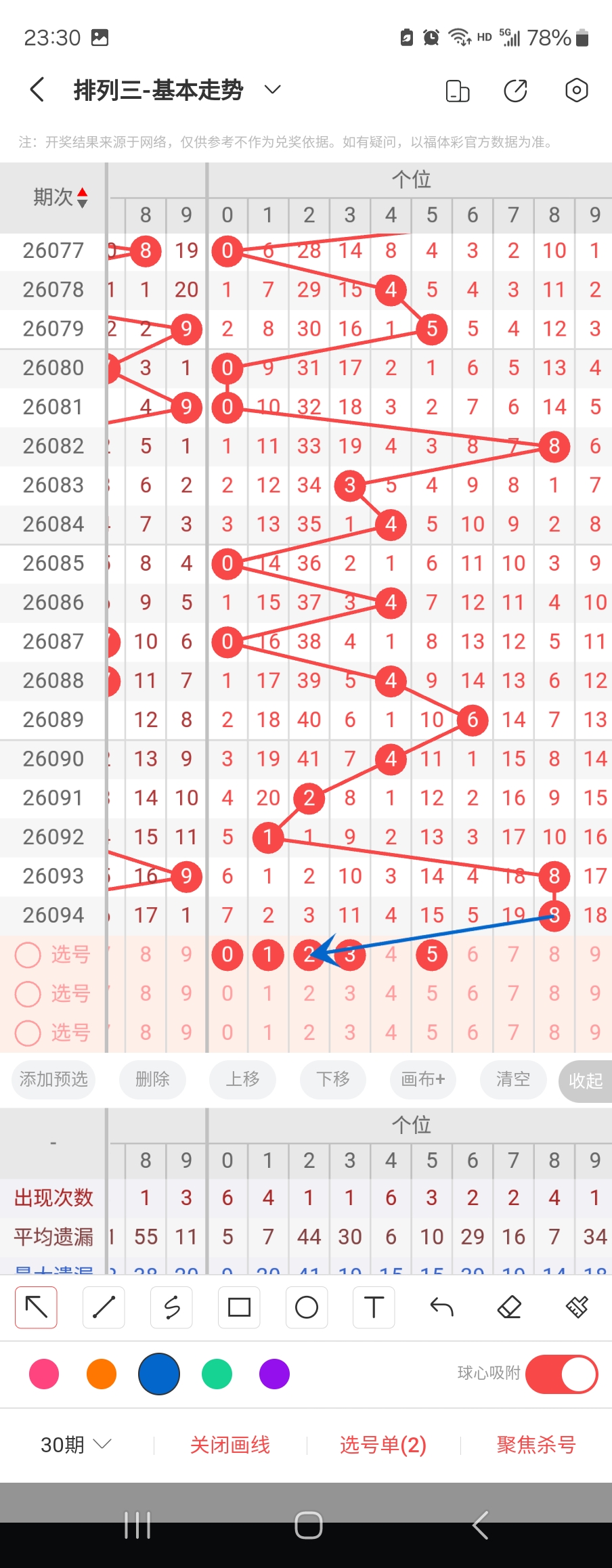 综合上期形态分布利于下期形态选号,约定12357为质,04689为合,147为1路,258为2路,0236为0路,