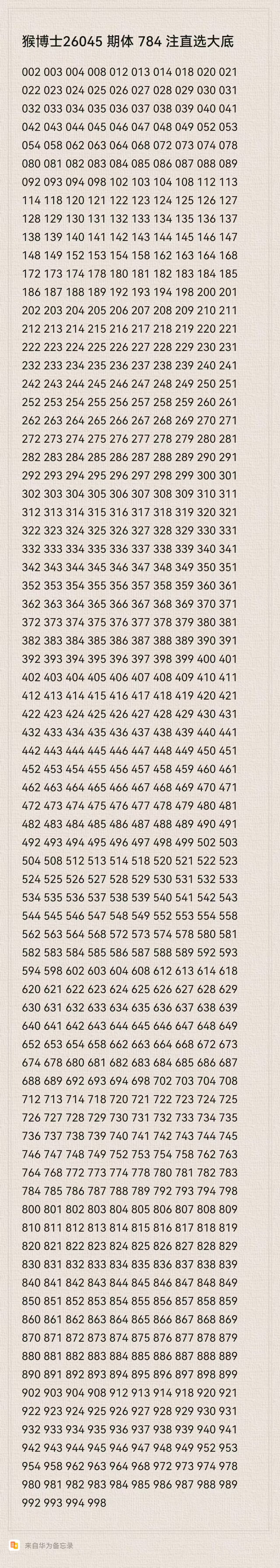 猴博士26045期排列三784注直选大底:(可以当母底用,然后进行缩水)