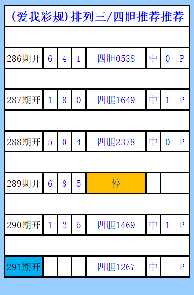排列三第291期图文(爱我彩规),四胆推荐