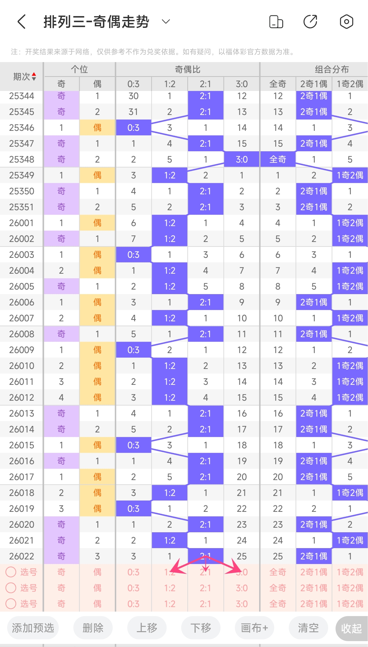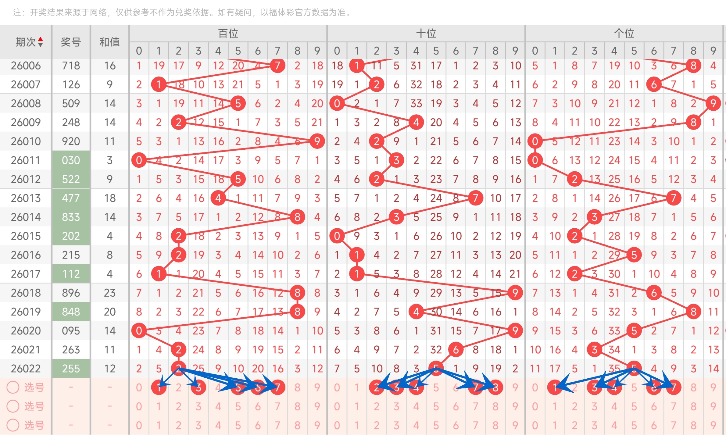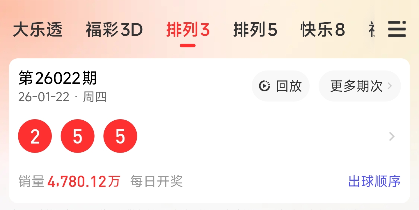 上期排列3开出255,和尾为2,跨度为3,奇偶比为2:1,大小比为2:1,012路个数对比为0:0:3。