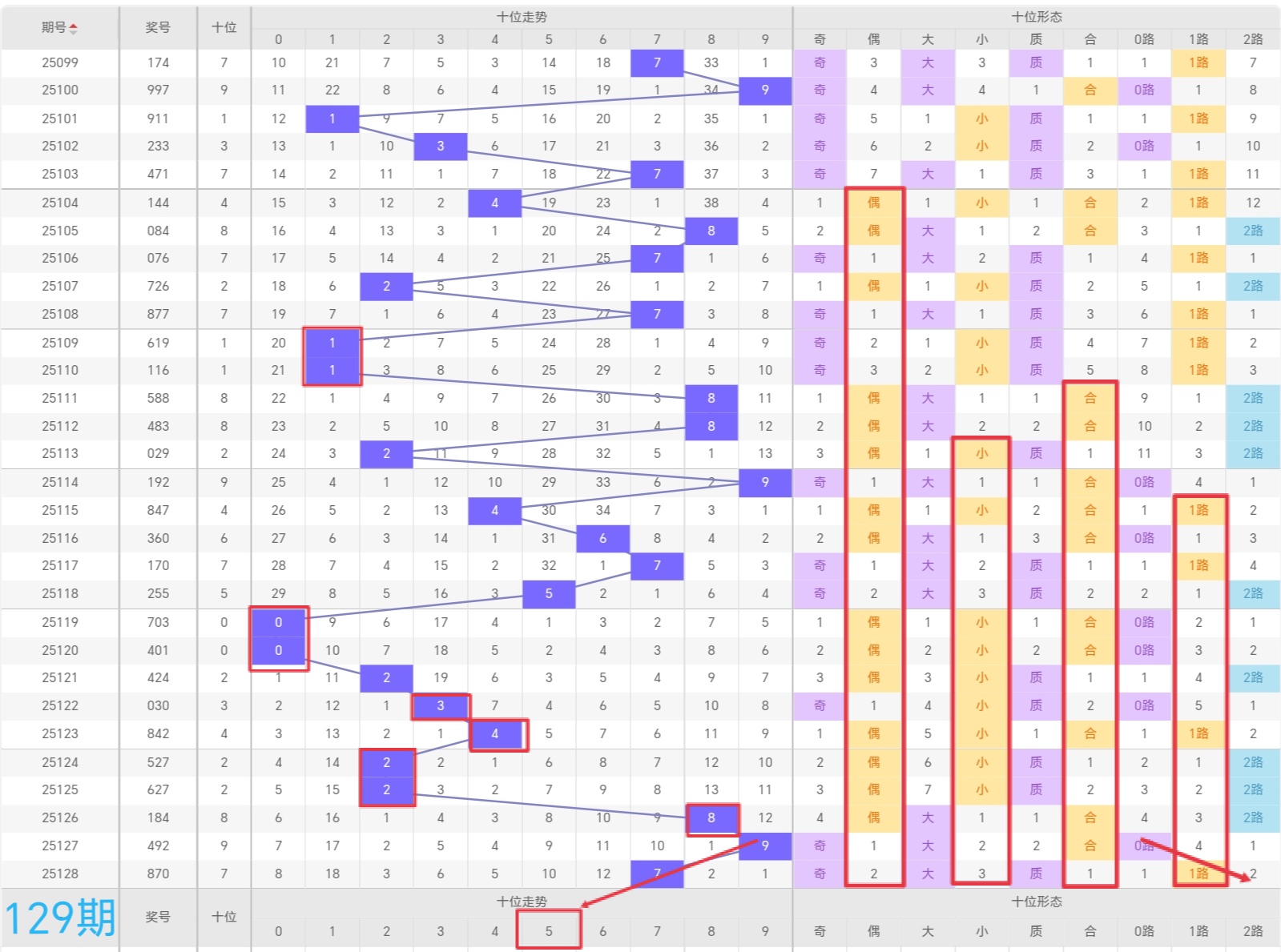 个位:上期在前半段0~2开出号码,本期可能会在中间段3~6和后半段7~9开出号码,个位连续三期开出偶数,本期可能开出奇数,可能是大数和合数,个位上期开出0路号码,本期可能开出0路号码,防守2路号码。