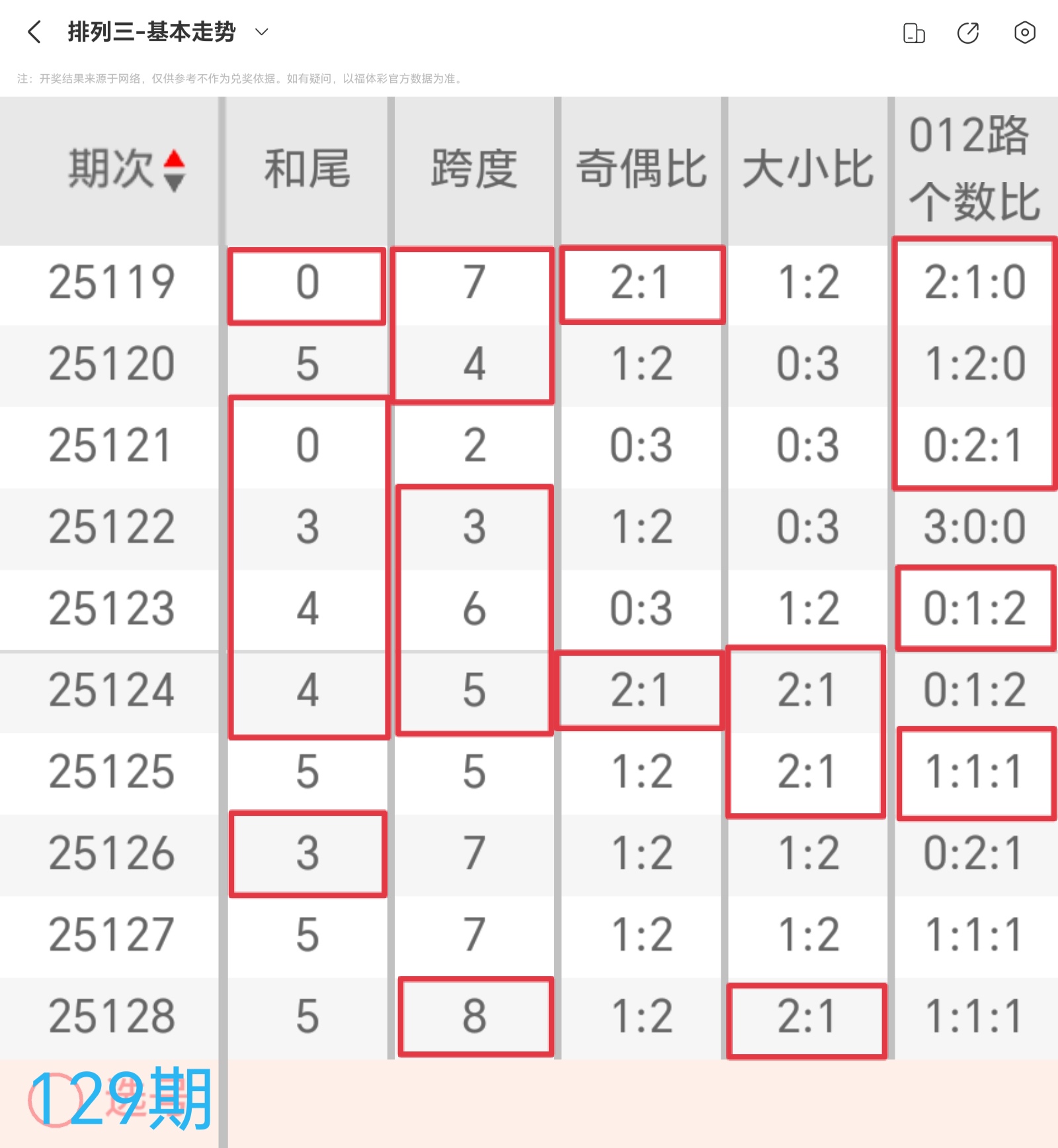 012路:连续两期三路号码同出,本期可能断2路号码2、5、8。
