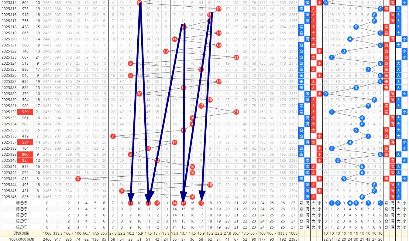 和值分析 :和值是排列3中另一个重要的技术指标,它反映了三个开奖号码的总和。根据历史数据,..最佳和值为9.11.12...这些和值可以作为本期投注的参考。