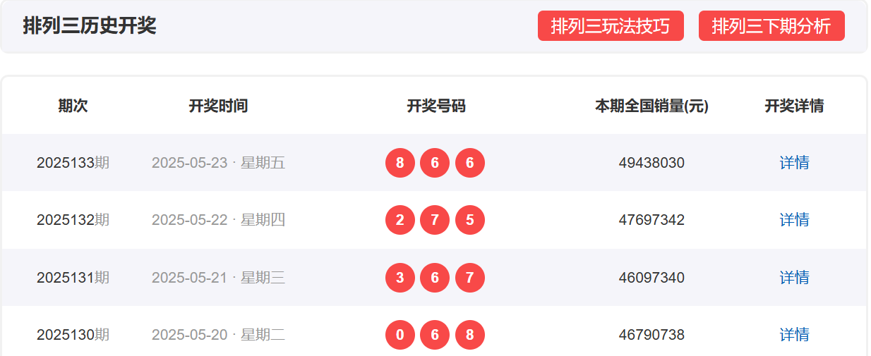 5、综上所述排列3-第25134期定位推荐信息如下: