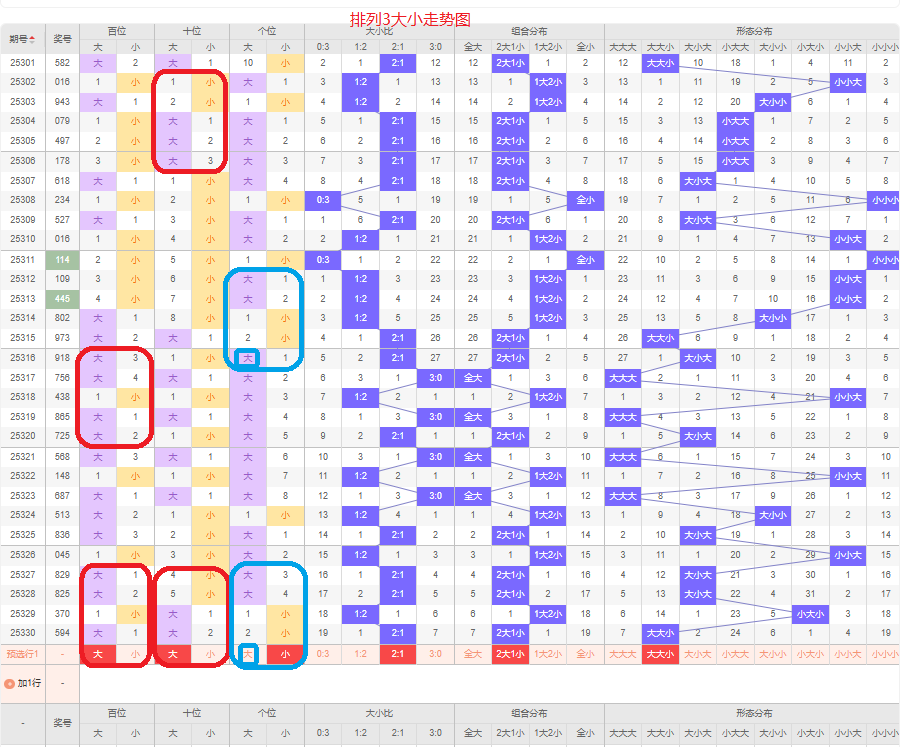 上一期大小比为2:1,两大的号码组合,近五期大号出8次,小号出7次,大小号码出现较平均,上一期是两大的号码组合,本期侧重两大的号码组合,百位侧重大号码,十位侧重大号码,个位侧重小号码,侧重大大小或者大小大的号码组合,根据大小形态五码定位56789/56789/01234或者56789/01234/56789