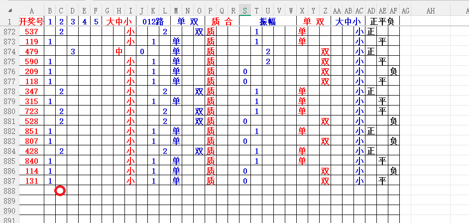 如上图8,012路分析1路出的概率大,本期可以从2路号入手,也就是23数。