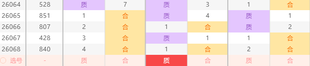② :本期体彩排列三十位质合走势,根据图上标记规律,最近五期内十位出现出合后出质的规律,此规律已出现一组,如图中所示,据规律概率理论值来分析,本期十位开出质数号概率很大,所以本人分析本期期十位出质号,可以参考十位:12357