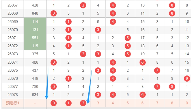上图是体彩排列三开奖号码走势分布图,我标注出来的数字012这个区域上期一个数字都没出现,最近4期这个区域出号码2个,那么本期这个区域出号码的机会是有的,关注这个区域数字出一个或者两个。
