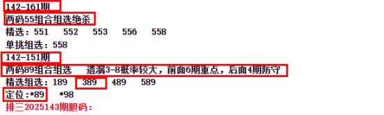 148期开出了557全大全奇组三,142期给出的两码55组合的周期绝杀开出。最近排家的绝杀全部开出,中间没有出现过调整,继续耐心等待下一个。三胆目前也没有出现连续回调,都是调整一期后就回补上去了,整体趋势还是比较平稳,可以继续关注。昨天组三遗漏1这个点开出,继续在0-2这个周期内开出,目前0-2这个区间一个小遗漏的密集区间,这个区间继续开出红格子还是大概率事件。