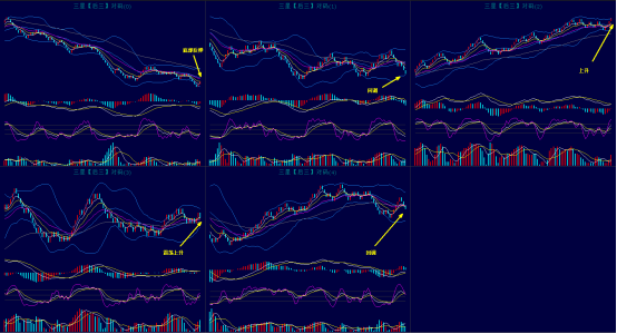 上图是对码胆的同屏K线图,上期开出了557对应的对码是002开出了对码组三。上图中可以看到对码0底部出现了连续反弹行情,K线离布林中轨的压力位还有上升的空间,今天还有开红格子的概率。对码1连续回调中,继续观望为主。对码2整体还是走上升趋势,继续顺势而为。对码3横盘震荡中,这个位置胡慈爱布林中轨,大概率还是能形成支撑,今天开红格子概率较大。对码4高位出现了连续调整,现在有点破位,继续观望为主。