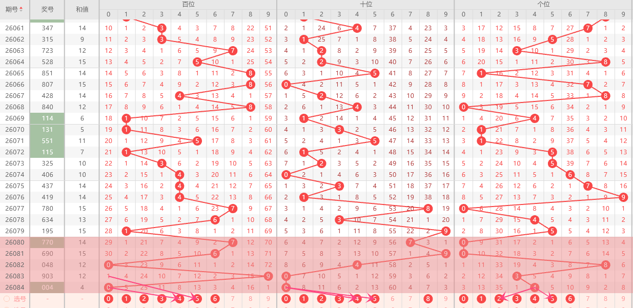 十位上期开出号码0,小数、偶数、十位近5期开出号码为:7-9-4-0-0,从近5期看80期遗漏为22,81期遗漏为1,82期遗漏为13,83期遗漏为8,84期遗漏为0,本期号码关注遗漏号码4、5,大小走势为:大大小小小。小数走热开出,本期关注大数开出。奇偶走势为:奇奇偶偶偶,偶数形态走热,注意奇数开出。本期十位推荐:0-1-2-3-4-5-8