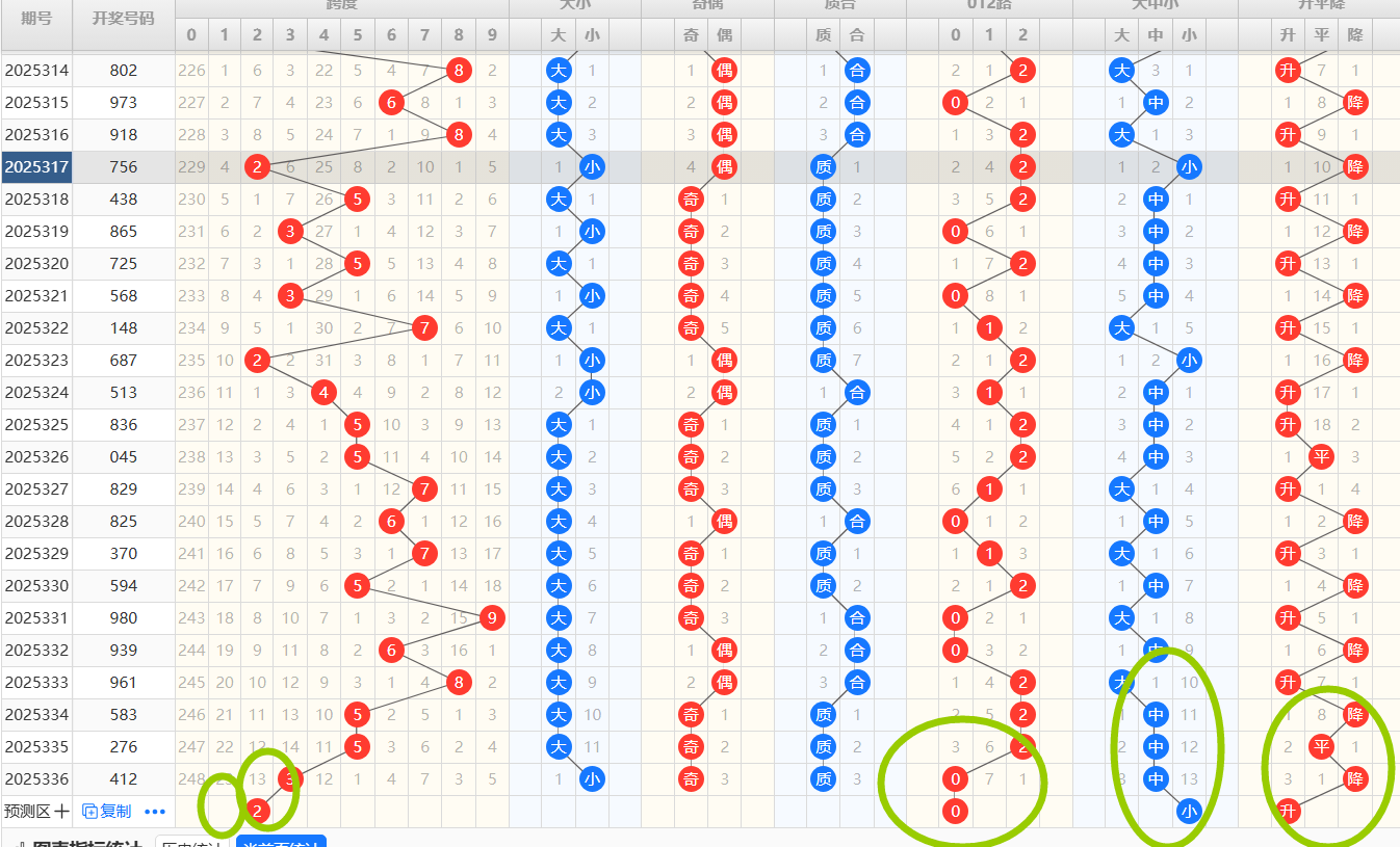 上期的开奖号码是3跨,本期关注上升跨度开出跨度范围可选4-9。本期012路跨度走势可以关注0/1路跨度的开出,跨度可主打:4/6/7/9可小防1/2跨开出