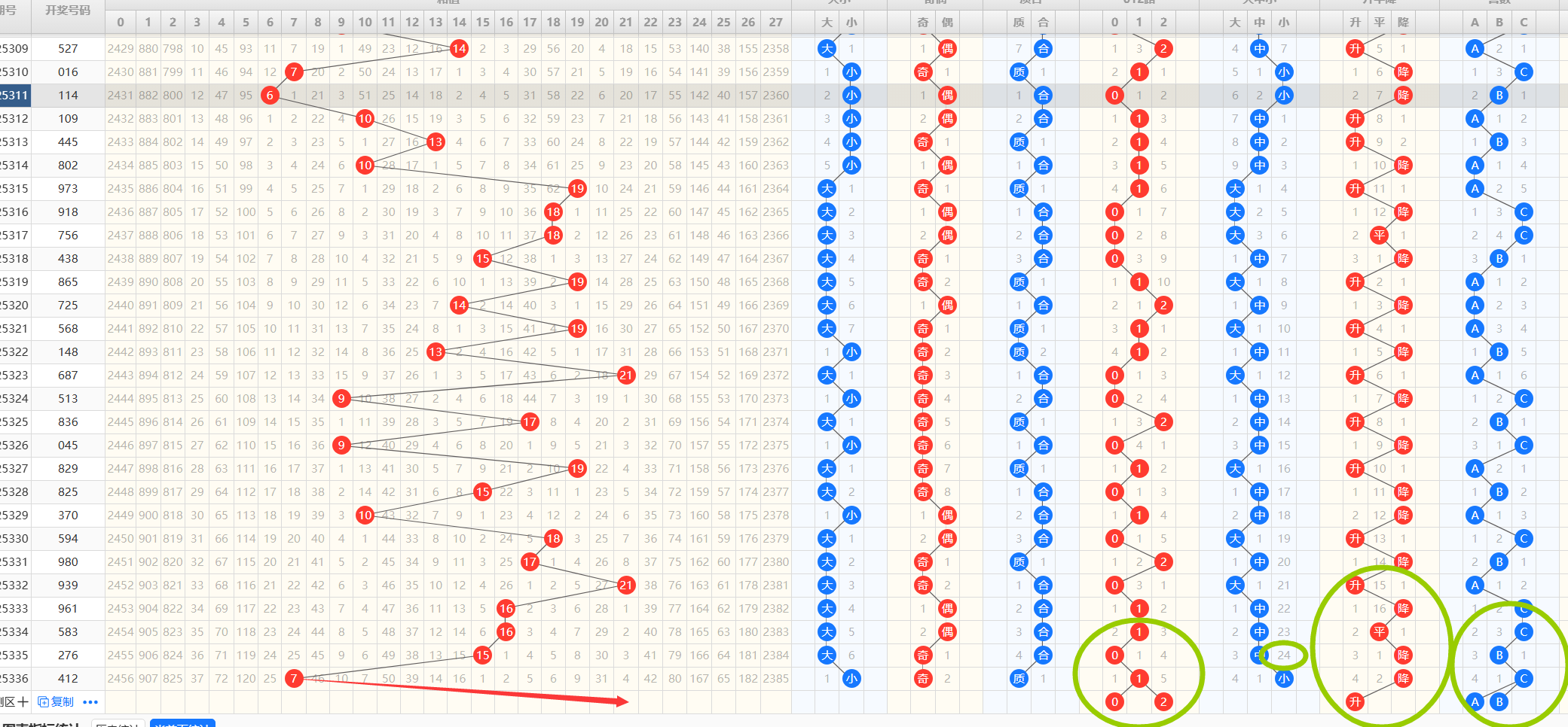 上期开出了两阳一阴的号码组合,本期主看两阳一阴、全阳防守全阴