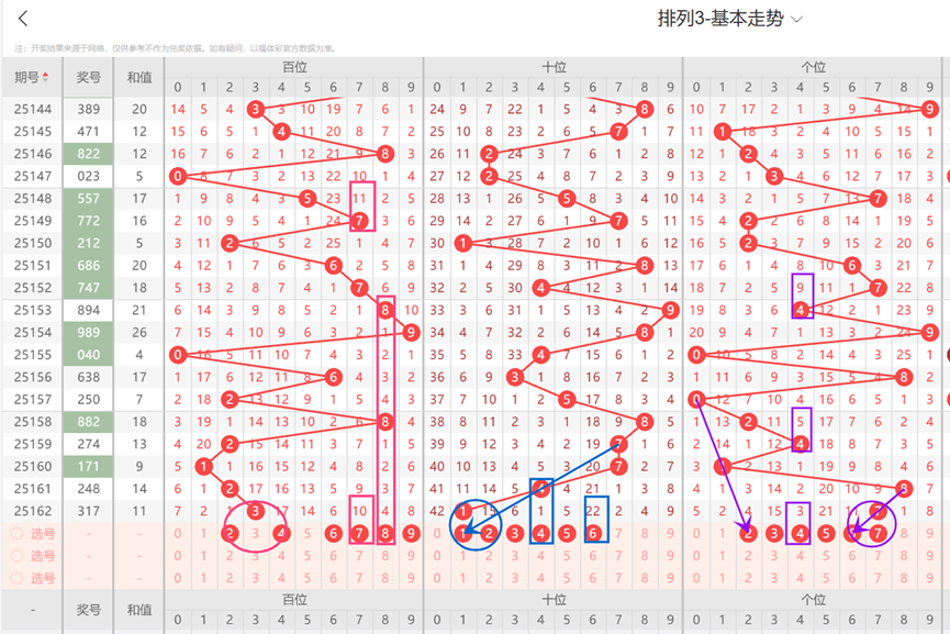 体彩排列3-第163期定位分析如下: