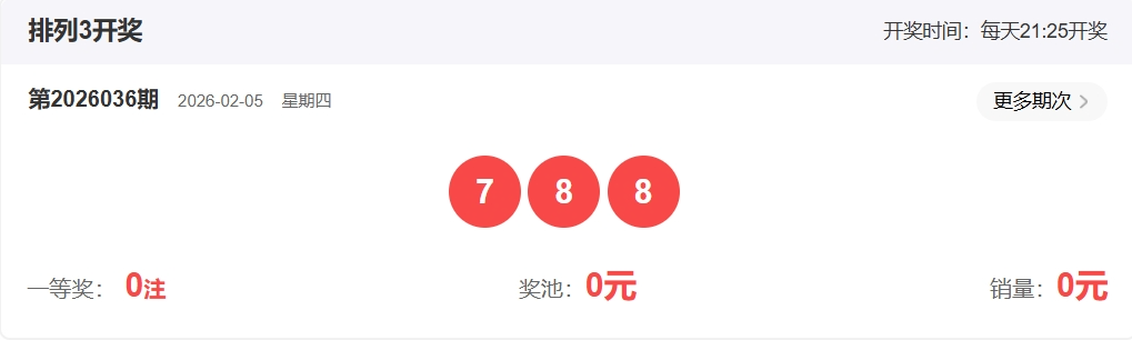 排列三第2026036期开奖回顾:开奖号码:788   形态:组三