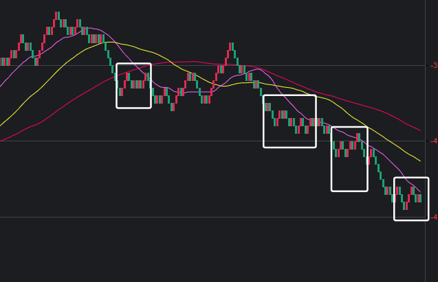 可以看到一些规律,在白框中,如果一致,那么接下来这些跨度也会出。