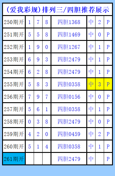 排列三第261期图文(爱我彩规),四胆推荐展示
