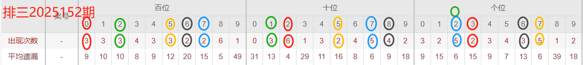 2025150期开奖号码212,我们可以看出近30期百位2出现3次,十位1出现3次,个位2出现5次。