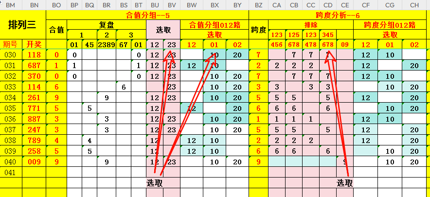 在组号逻辑中,合值与跨度是两个不可回避的参数,根据属性特点,规则设定了相应的表中数字分组,一是便于复盘,二是便于研判取舍;复盘数据如下: