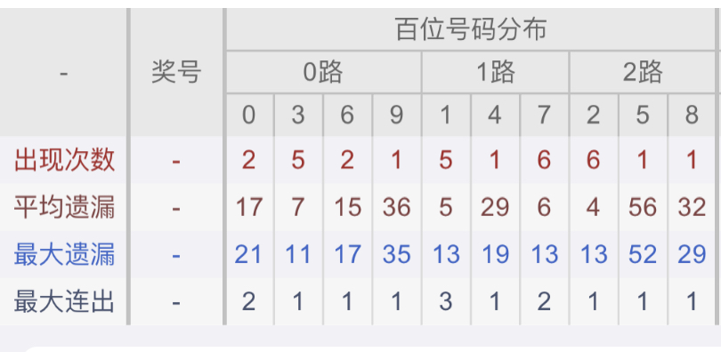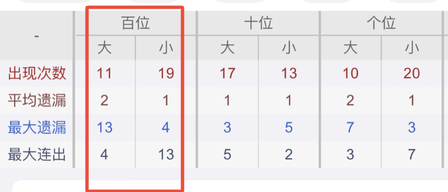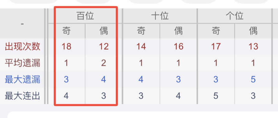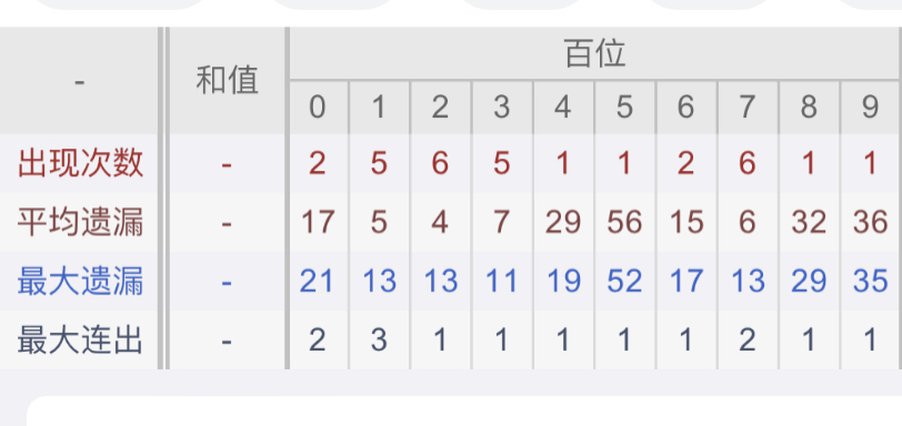 从近30期数据我们可以看出百位1237是热码,这个冷热码数据我们结合之后的分析再利用它