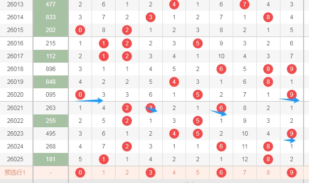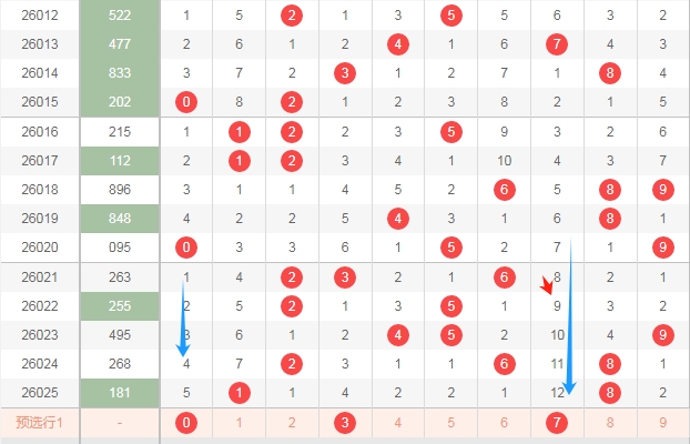 大家好,本人蔡楚门,一个玩彩十几年的老彩民,现在来本平台分享一下本人的对彩票的分析思路和看法,希望本人的文章能够给你们带来灵感和好的运气,首先感谢一起彩提供一个好的平台,下面走势图都是用一起彩平台的走势图,接下来分析一下体彩排列三第2026026期号码思路。下面文章中名词解读,合数为0 4 6 8 9,质数1 2 3 5 7,奇数1 3 5 7 9,偶数0 2 4 6 8,1路球数字1 4 7,2路球数字2 5 8,,0路球数字0 3 6 9。下面分析是从左到右定位分析。