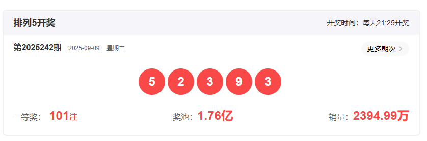 上期排列5开奖号码回顾