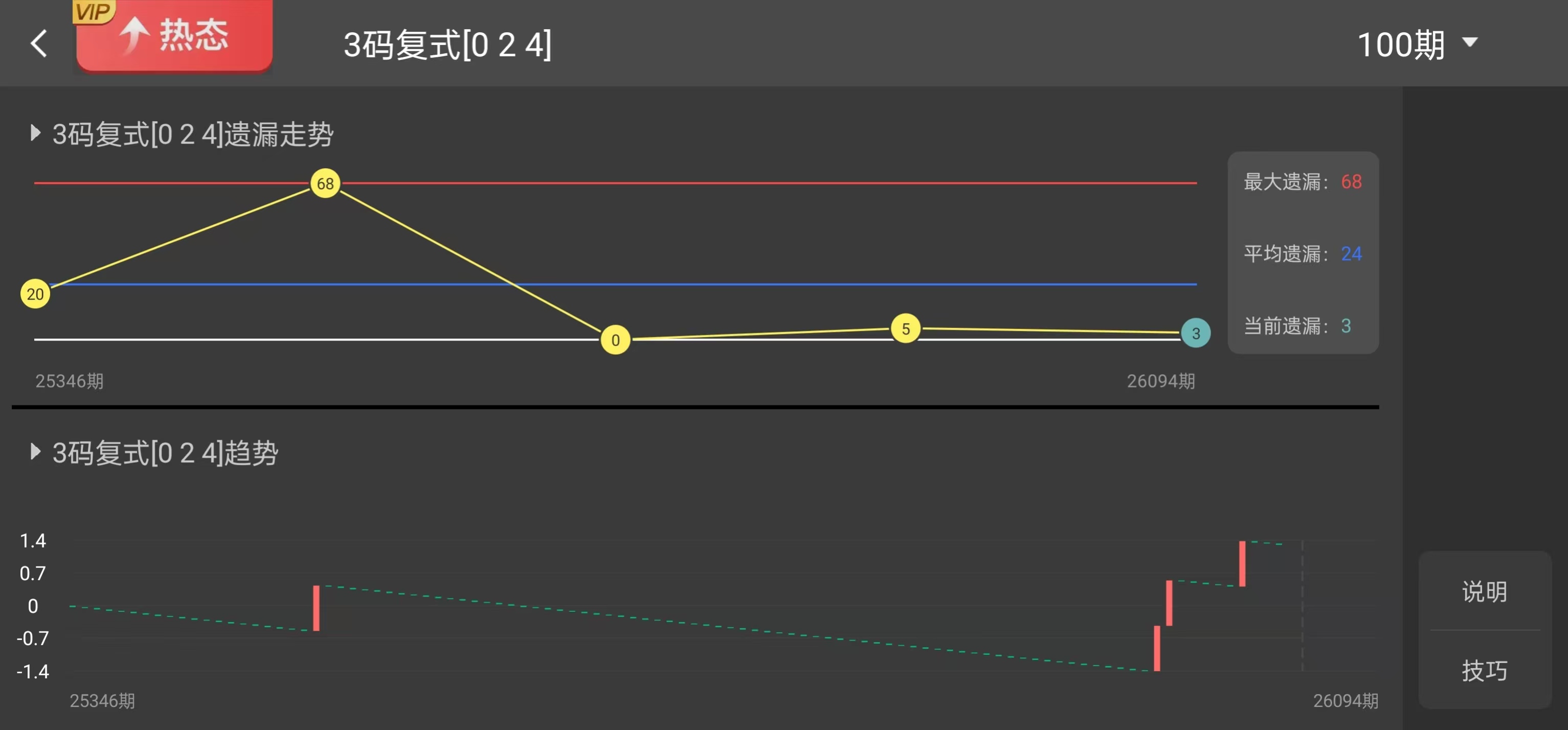 跨度走向近 9 期跨度集中在 1-7 区间,近 2 期连续开出中高跨度 6,偏离近 9 期跨度均值,下期跨度大概率呈现回落走势,向中低跨度区间收敛,高跨度连续开出的概率偏低,整体向 3-5 的中跨度区间靠拢。