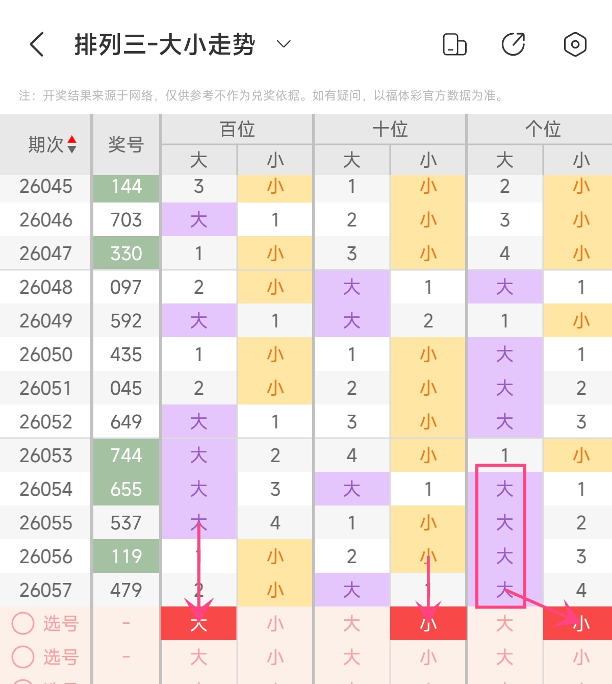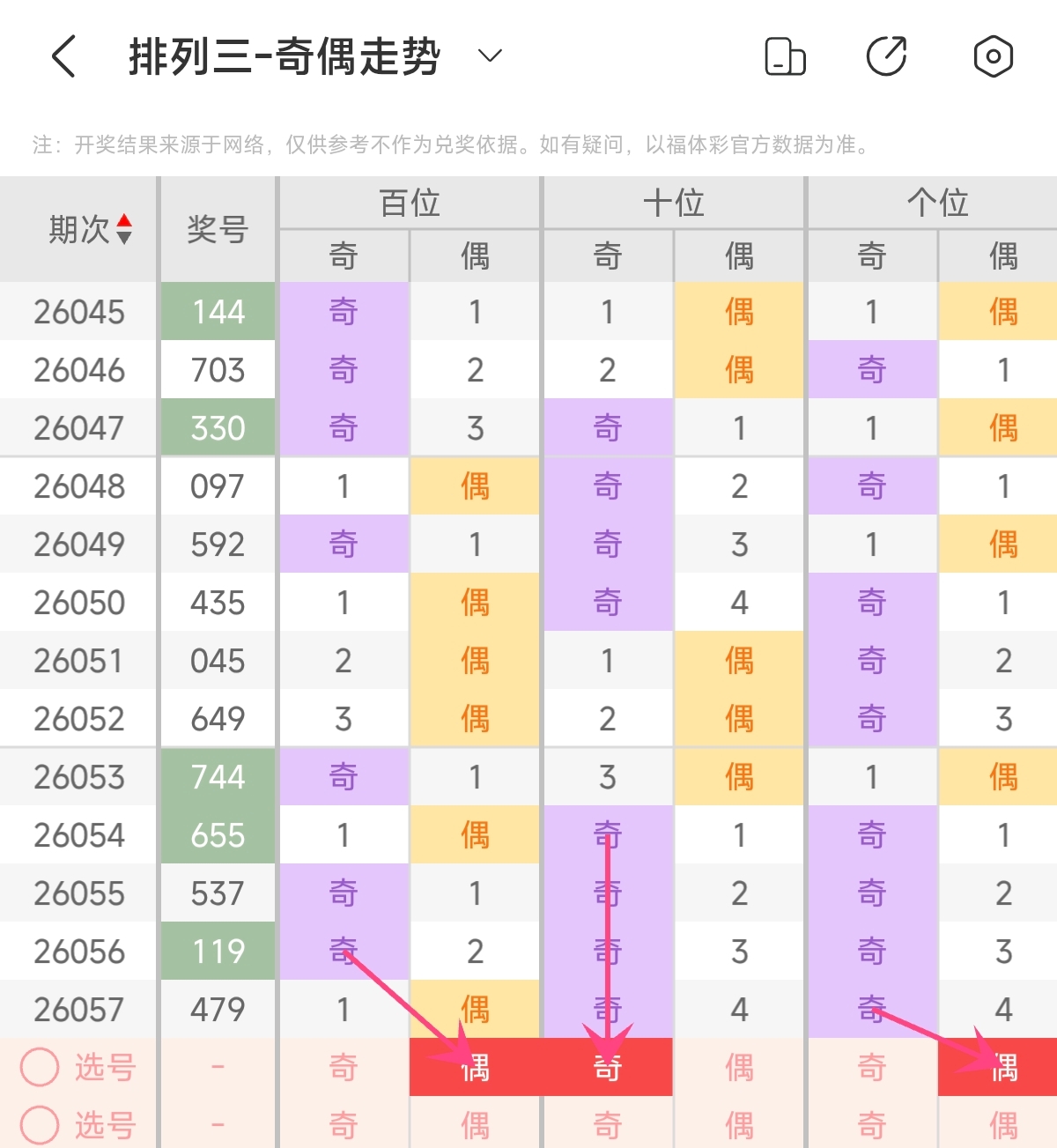 首先让我们回顾一下上期排列三第2026057期开奖号码为479,为组六形态,大小比为2:1,奇偶比为2:1,跨度为5,和值为20。