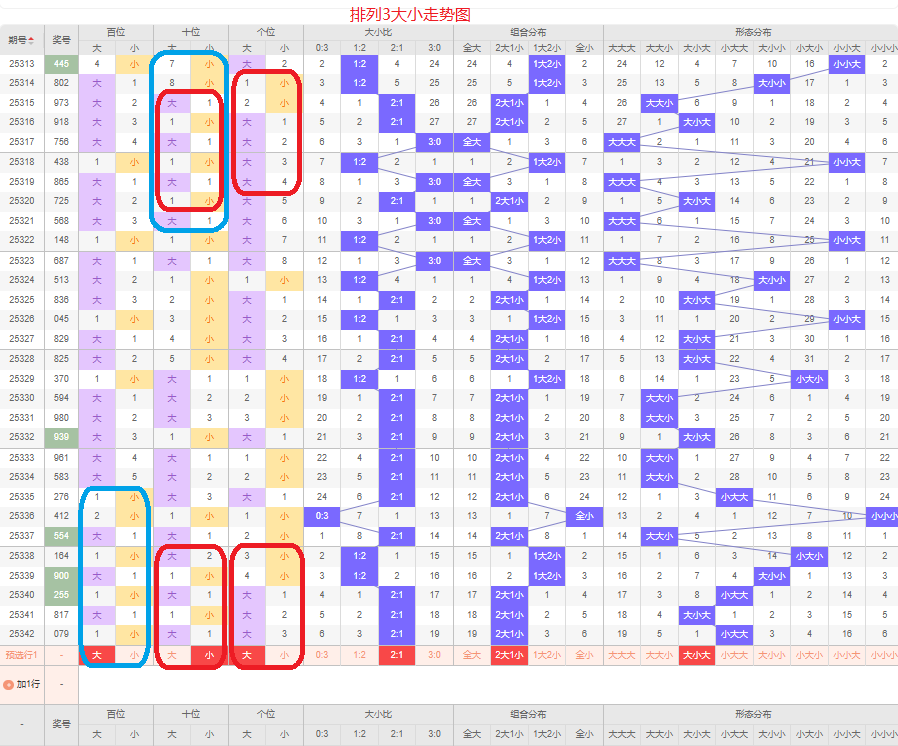 上期推荐01路,两大组合形态小大大,两奇组合,和值16的条件正确。