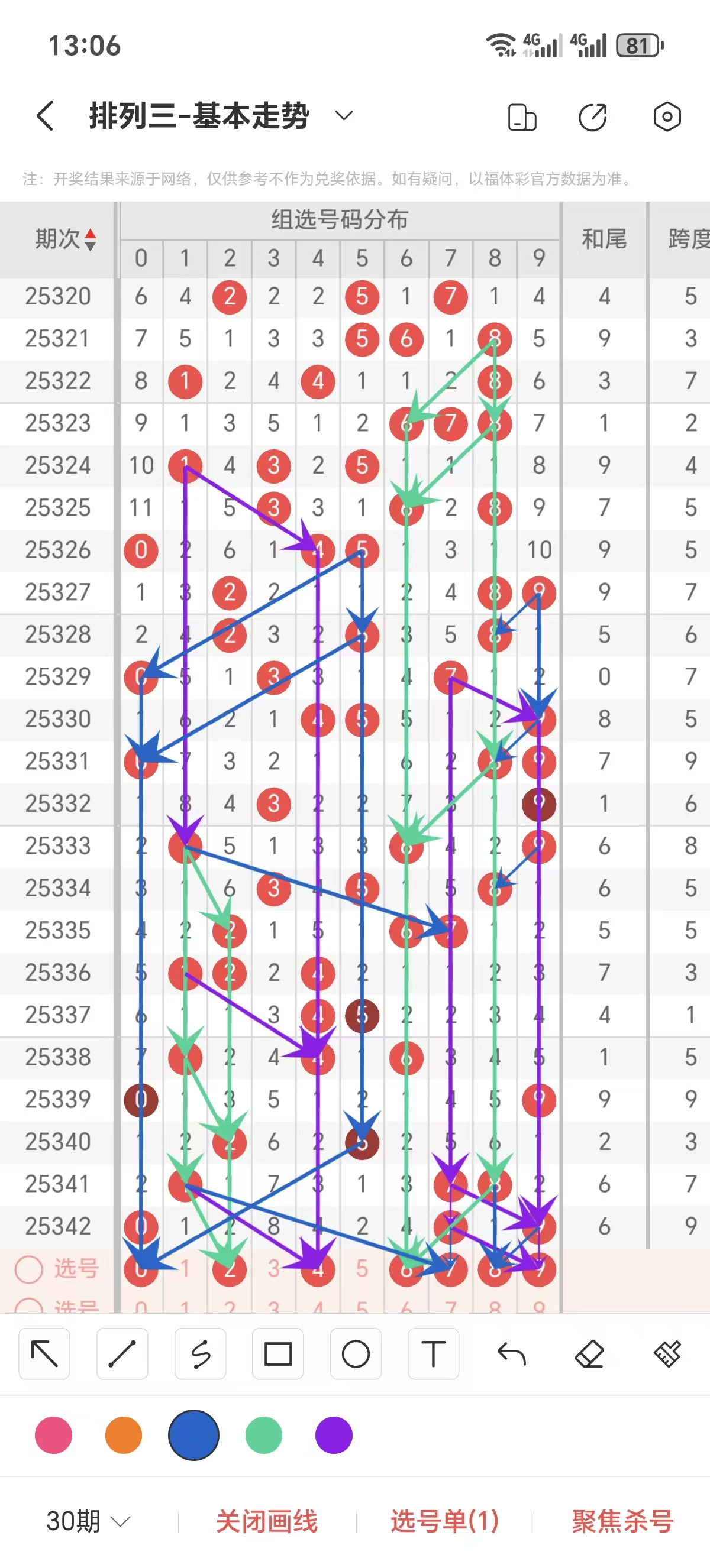 六 排列3第25343期组选号码走势分析