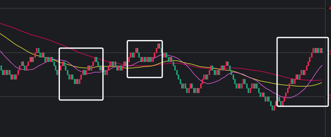 可以看到一些规律,在白框中,如果一致,那么接下来这些跨度也会出。