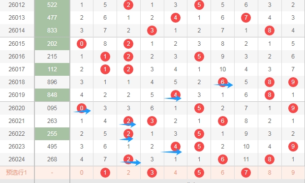 大家好,本人蔡楚门,一个玩彩十几年的老彩民,现在来本平台分享一下本人的对彩票的分析思路和看法,希望本人的文章能够给你们带来灵感和好的运气,首先感谢一起彩提供一个好的平台,下面走势图都是用一起彩平台的走势图,接下来分析一下体彩排列三第2026025期号码思路。下面文章中名词解读,合数为0 4 6 8 9,质数1 2 3 5 7,奇数1 3 5 7 9,偶数0 2 4 6 8,1路球数字1 4 7,2路球数字2 5 8,,0路球数字0 3 6 9。下面分析是从左到右定位分析。