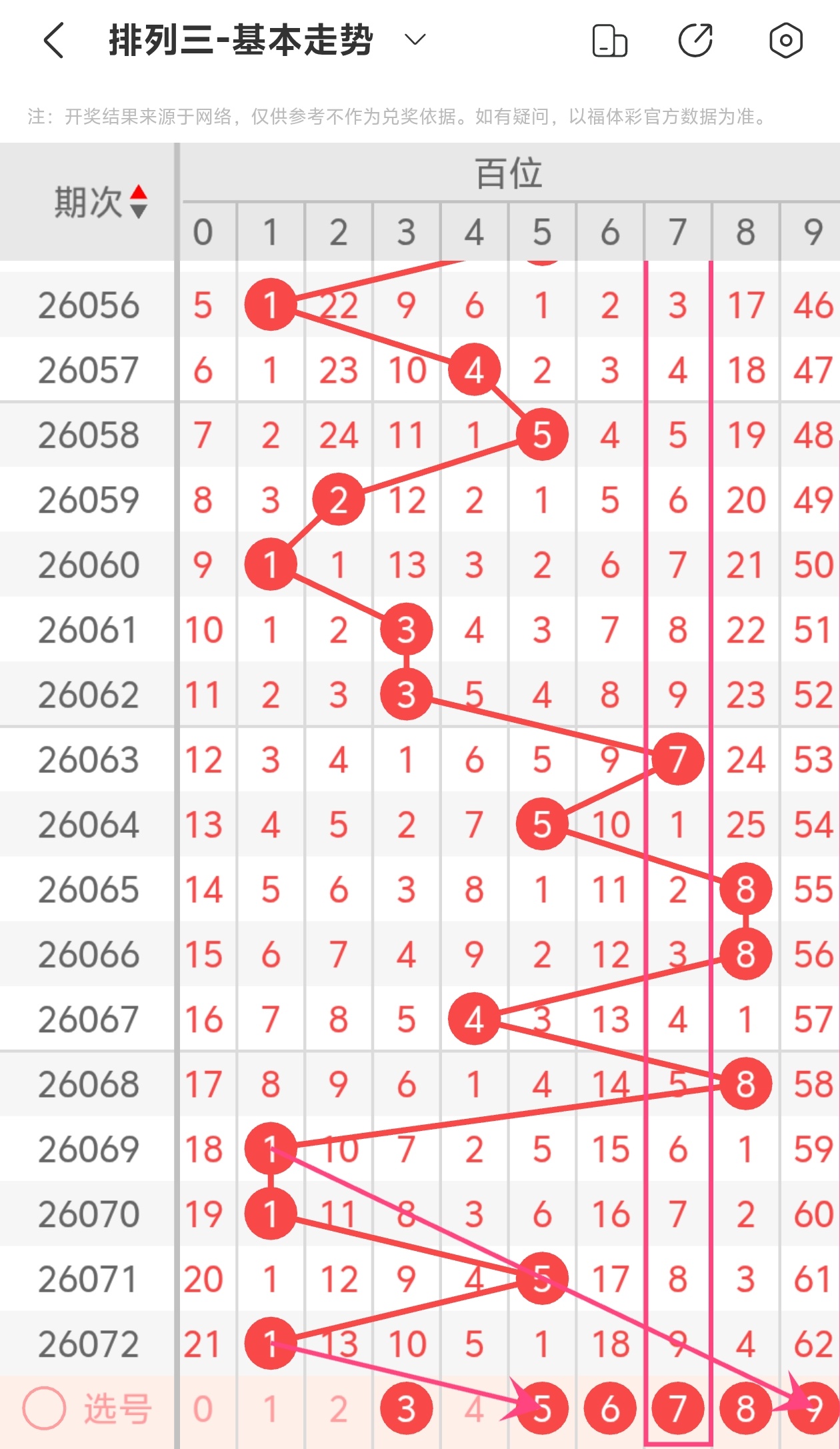 下面是体彩排列3的百位走势图分析