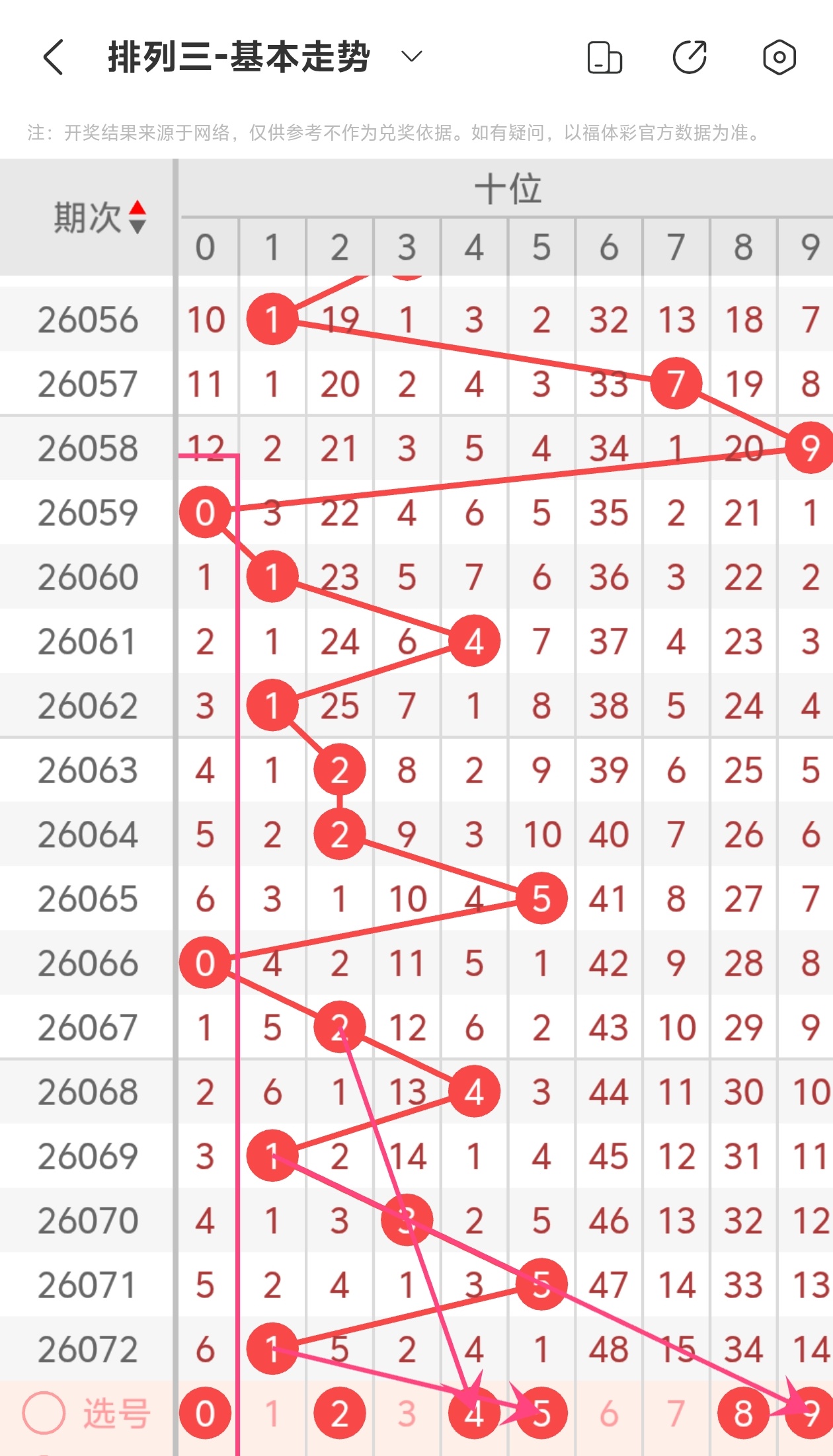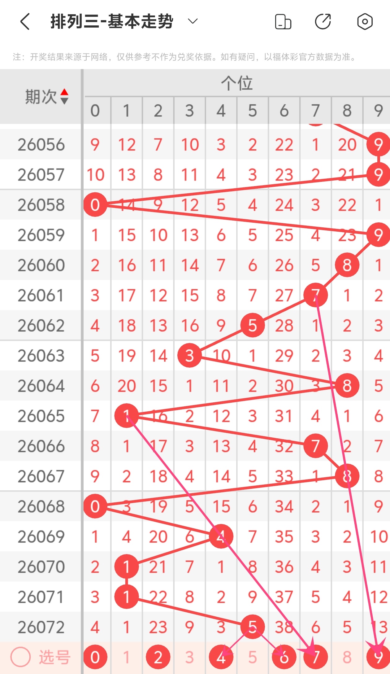 下面是体彩排列3的个位走势图分析