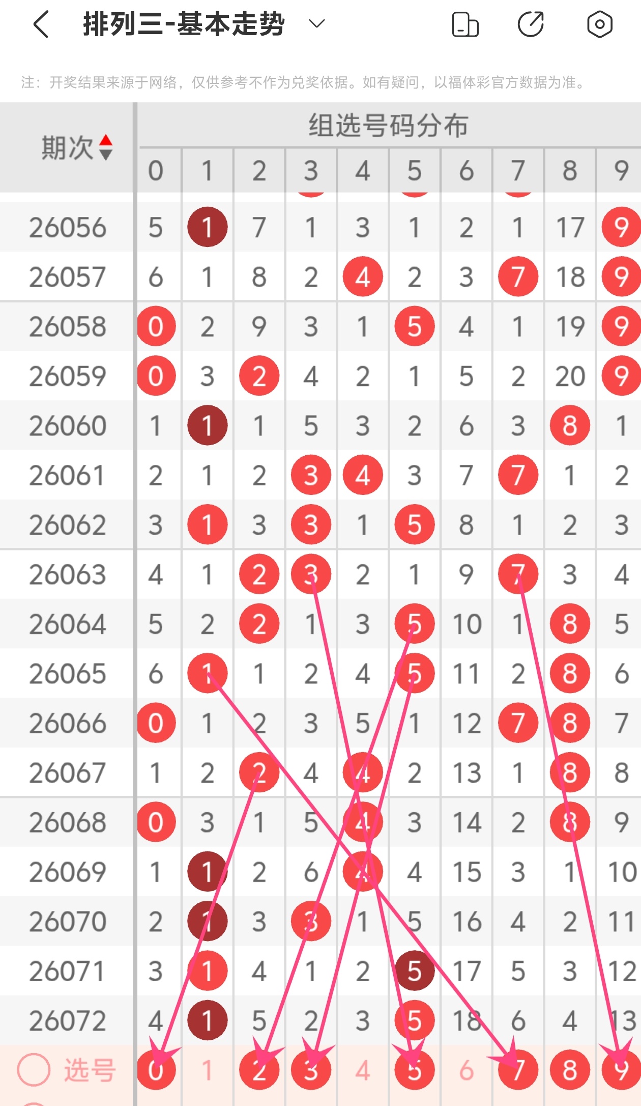 通过以上简单分析,我们看下26073期号码的定位分析: