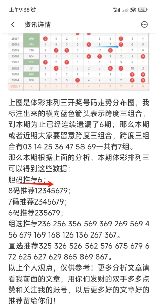 上图是体彩排列三上期号码分析文章截图,我最后推荐的胆码正确,这个你们去看上期的号码分析文章吧。