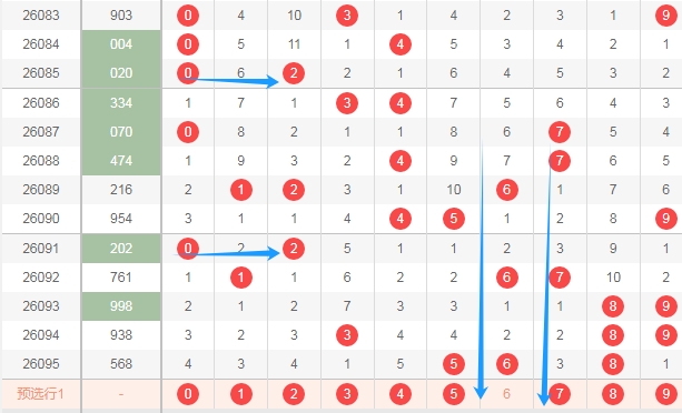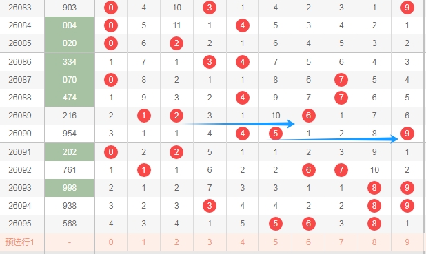 大家好,本人蔡楚门,一个玩彩十几年的老彩民,现在来本平台分享一下本人的对彩票的分析思路和看法,希望本人的文章能够给你们带来灵感和好的运气,首先感谢一起彩提供一个好的平台,下面走势图都是用一起彩平台的走势图,接下来分析一下体彩排列三第2026096期号码思路。下面文章中名词解读,合数为0 4 6 8 9,质数1 2 3 5 7,奇数1 3 5 7 9,偶数0 2 4 6 8,1路球数字1 4 7,2路球数字2 5 8,,0路球数字0 3 6 9。下面分析是从左到右定位分析。