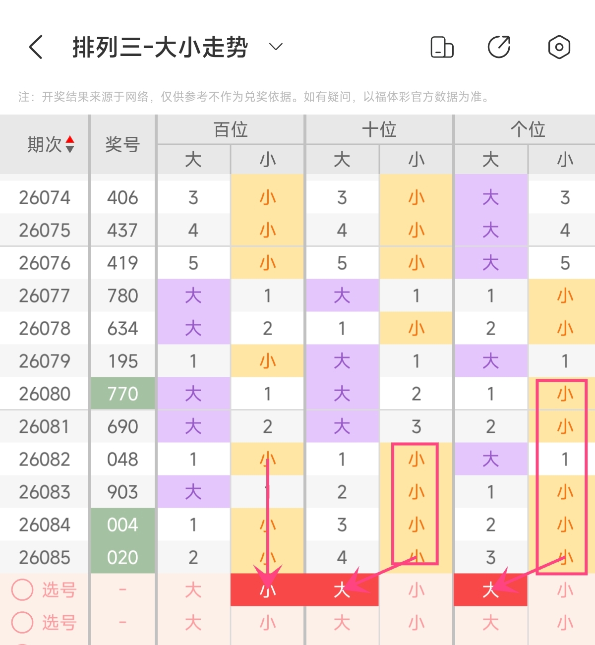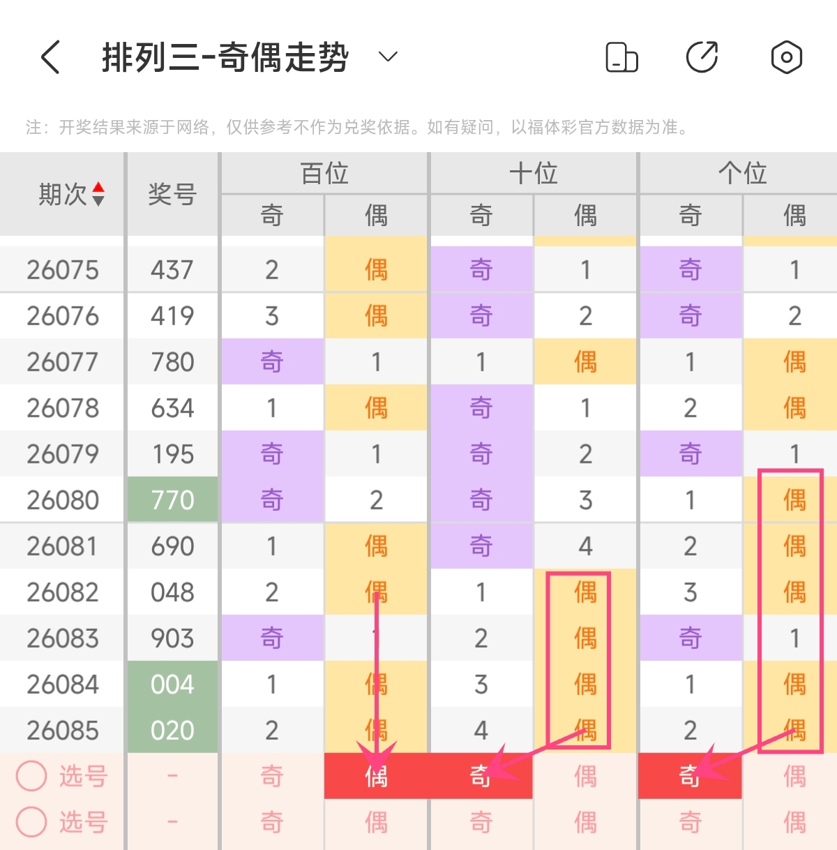首先让我们回顾一下上期排列三第2026085期开奖号码为020,为组三形态,大小比为0:3,奇偶比为0:3,跨度为2,和值为2。
