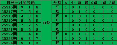 排列三是从0-9每期开出3个号码,截至2025324期三个位置最大遗漏的是25期个位的1号。