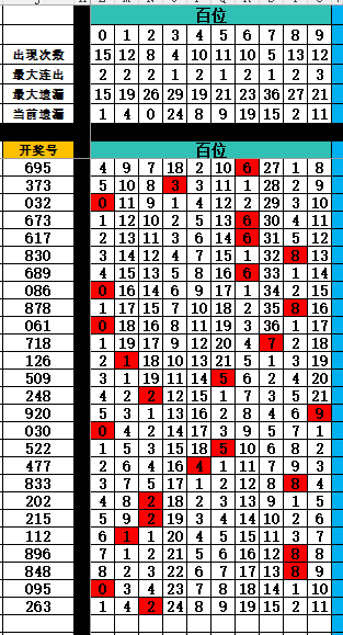1:百位排序(近100期)开奖号百位0-9个数排序为0819546273 *首选*>>>08195 *次选*>>>46273