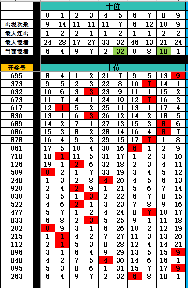 2:十位排序(近100期)开奖号十位0-9个数排序为1723480956 *首选*>>>17234 *次选*>>>80956