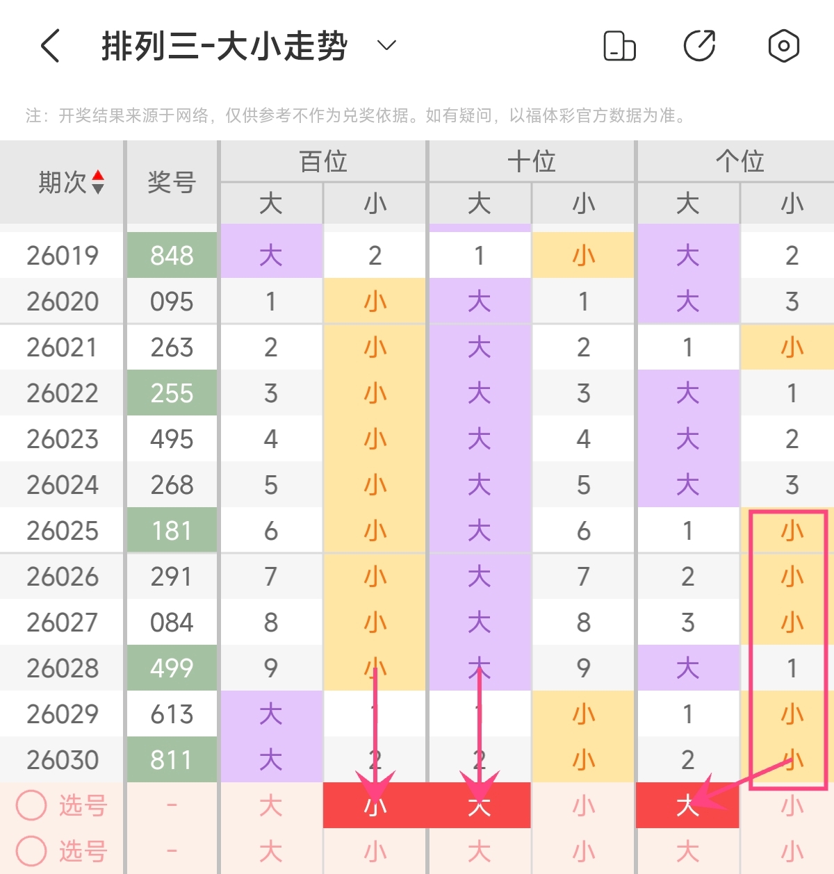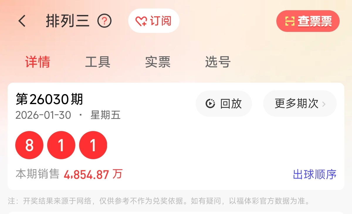 首先让我们回顾一下上期排列三第2026030期开奖号码为811,为组三形态,大小比为1:2,奇偶比为2:1,跨度为7,和值为10。